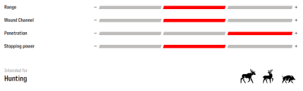 Takva konstrukcija zrna jamči odlične balističke performanse po pitanju putanje i preciznosti ali i izniman šok efekt na divljači zbog izuzetno jake ekspanzije i deformacije.